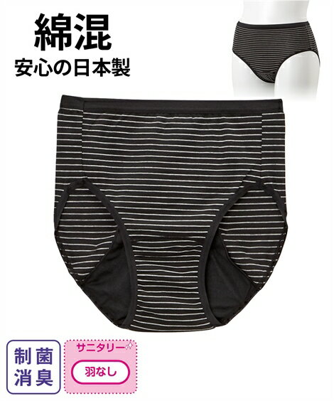 ショーツ サニタリー レディース 制菌消臭加工&ムレにくい 綿混 ストレッチ ボーダーサニタリー 夜用 黒系ボーダー LL/3L ニッセン