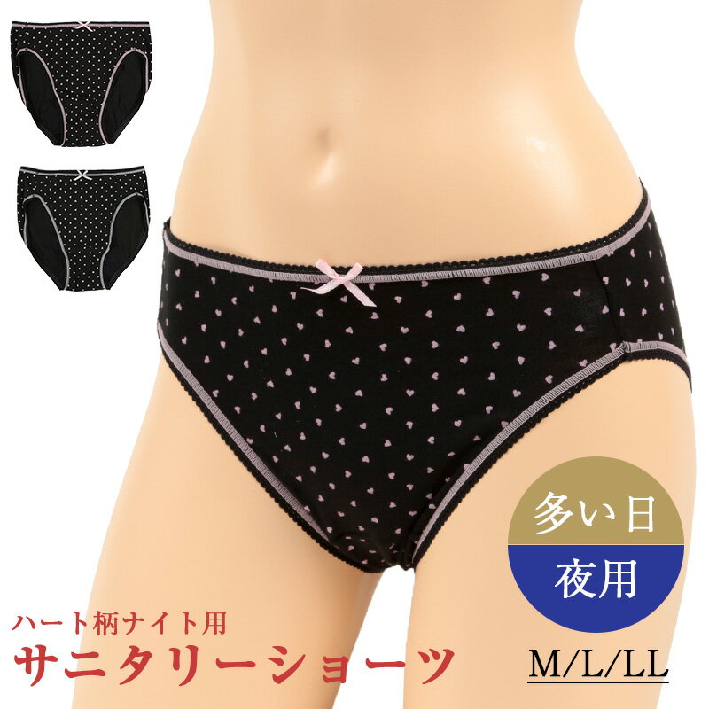 サニタリーショーツ 多い日 夜用 杢花柄プリント ナイト用 レディース 生理用ショーツ 2枚セット M L 女性 婦人 女の子 女子 ジュニア 生理ショーツ 生理パンツ サニタリー 下着 肌着 インナー