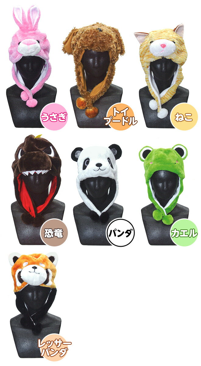 ■中国製 【送料無料】アニマル帽子 アニマルキャップ なりきり 動物 アニマル フリーサイズ(うさぎ・トイプードル・ねこ・パンダ・恐竜・カエル・レッサーパンダ)もこもこ ボンボン 帽子 キャップ 大人 子供 かわいい インスタ映え イベント プレゼント【即日発送】 ☆