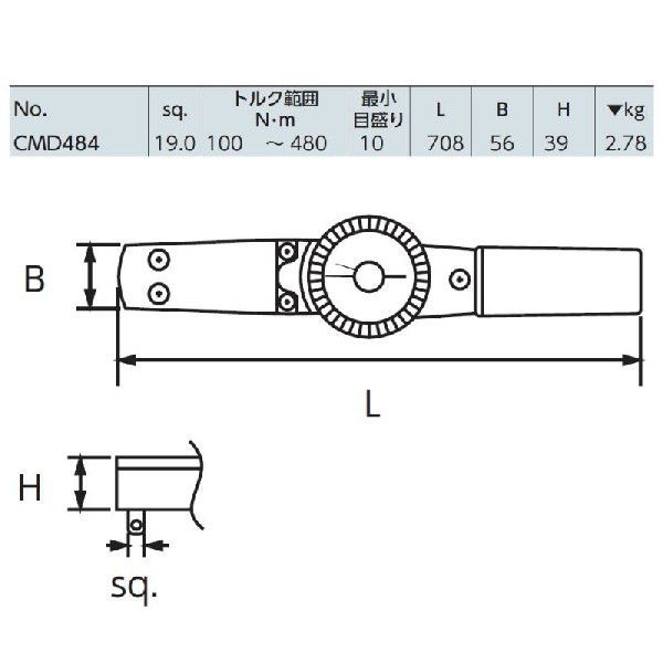 中型車エンジン用 19sq ダイヤル型トルクレンチ 100-480N・m 【KTC工具】 CMD484 送料無料