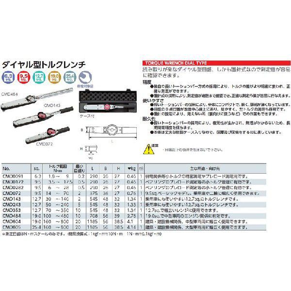 建設機械等用 19sq ダイヤル型トルクレンチ 160-800N・m 【KTC工具】 CMD804 送料無料